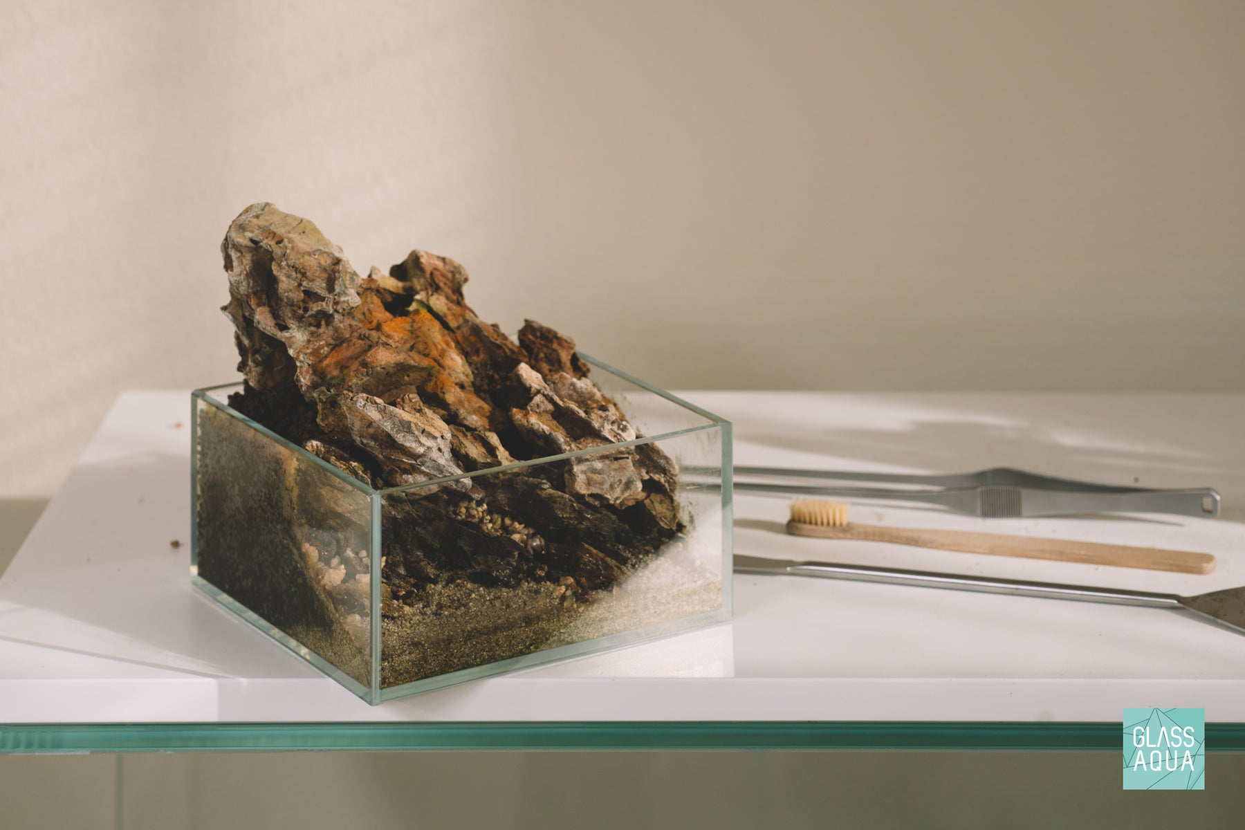 Place the included black leveling mat on a flat, stable surface. Carefully position the aquarium on the mat to ensure even weight distribution and prevent stress on the glass. Rinse the tank with water before adding substrate and decorations.